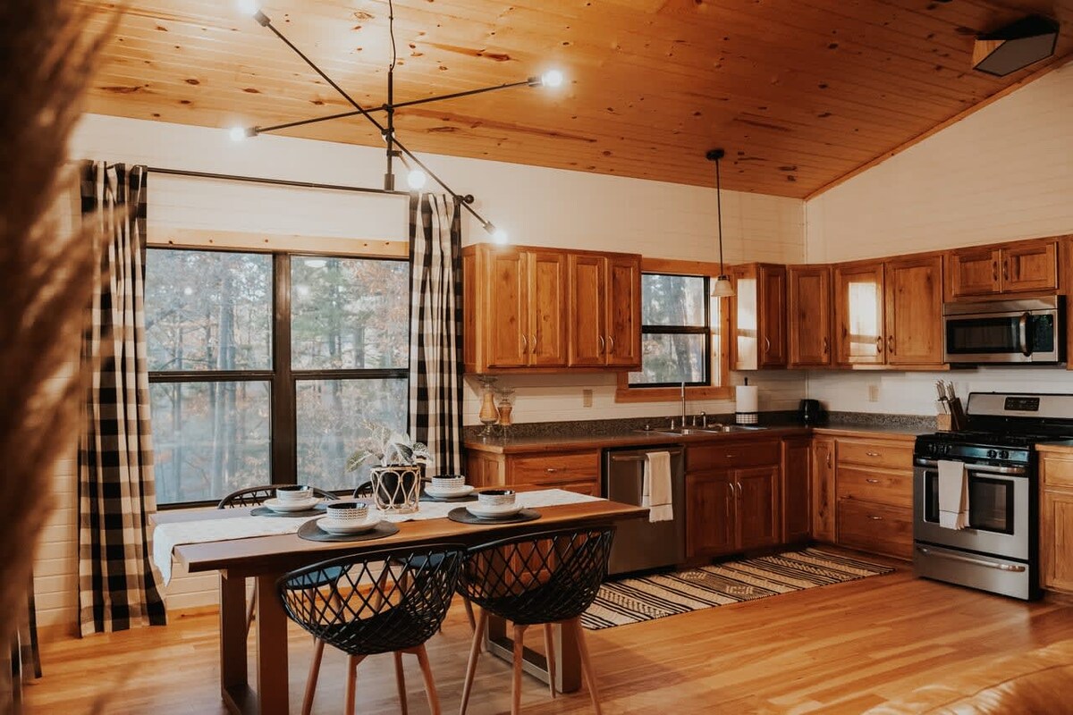The Highlands Retreat is a thoughtfully designed 1,300-square-foot cabin set on three private, wooded acres overlooking the breathtaking Arkansas Grand Canyon. Created for those who want to immerse themselves in nature without giving up modern comforts, it’s an ideal base for an unforgettable Ozark adventure or a serene weekend escape. Whether you’re here to explore the outdoors or simply slow down and unwind, everything you need for a memorable stay is right here.