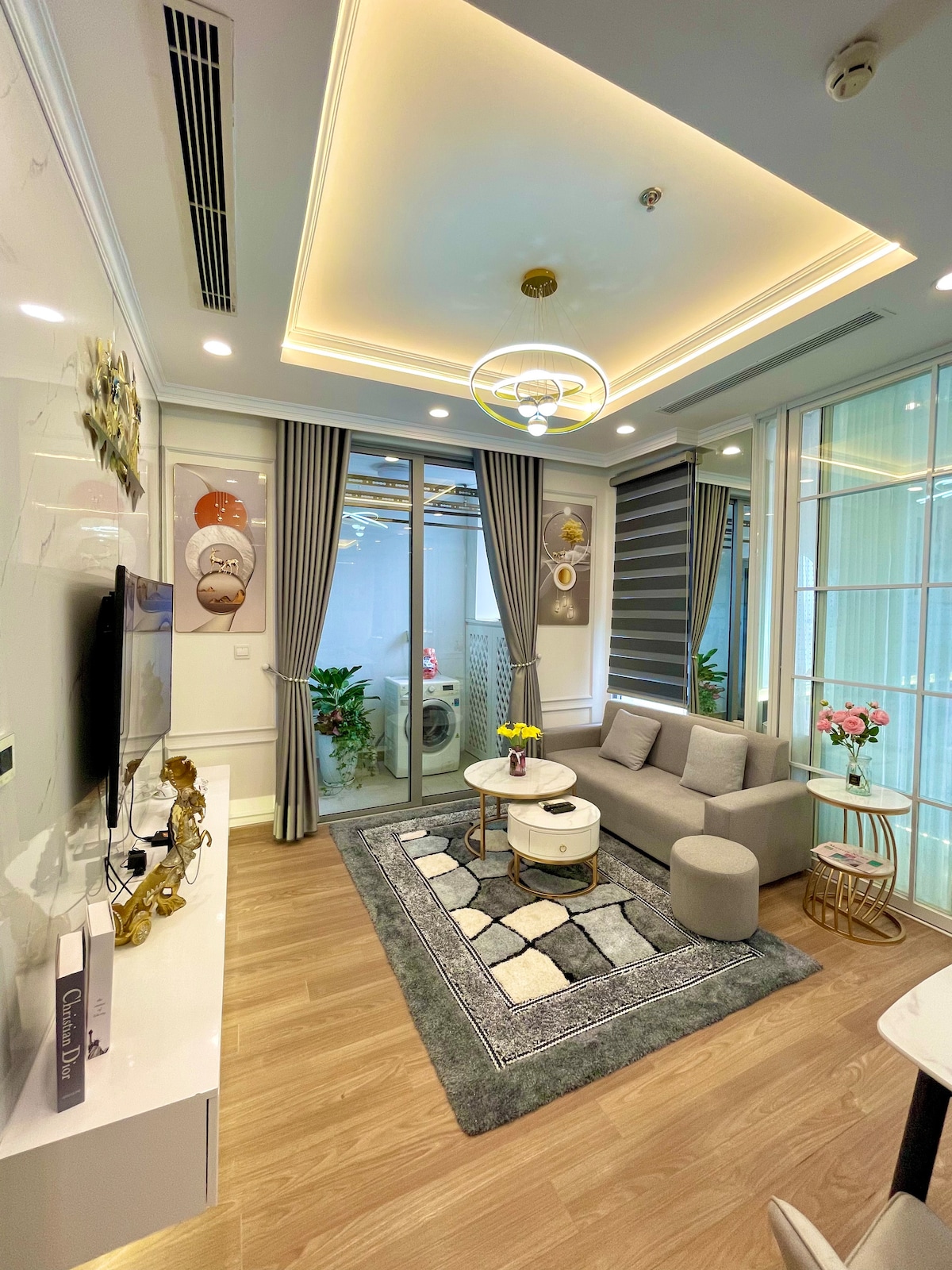 QV Homestay "SayMe"- Full 🏡 furnitures, amenities: washing machine, drying clothes, kitchen appliances, Toto bidet... QV Homestay will be a suitable choice for sweet couples, married couples, 2 families, etc. 18km away from Hoan Kiem Lake - Center of Hanoi Capital (HN) has a very unique green city, Ecopark, where there is no noise and dust in the city, only trees and flowers blooming with sunshine, light wind beautiful and peaceful lakes, wonderful gardens...