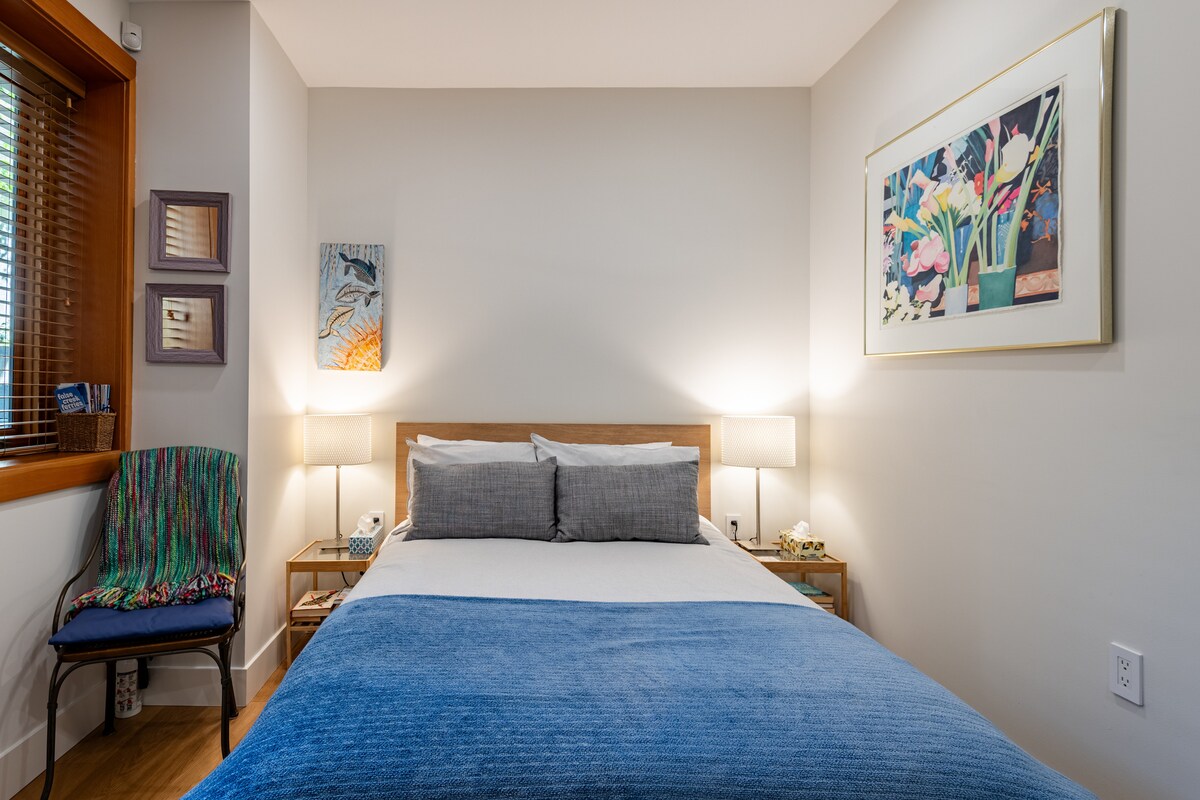 Located in central Vancouver in the beauty of the Douglas Park area, our neighbourhood is known for its old Vancouver homes, beautiful gardens, and a friendly and safe community. The space includes a private living area, bedroom with two twin beds, closet and dresser, and a private washroom. Big wooden windows look out onto a west coast garden that is bursting with tulips and daffodils in the spring. A welcoming and restful stay awaits you in this quiet and artistic home.
