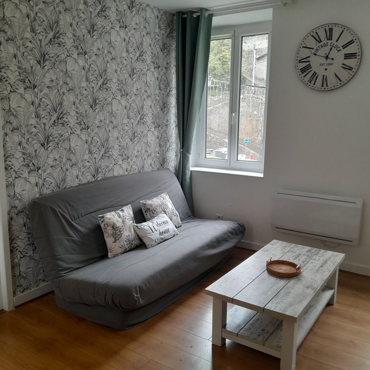 I welcome you to a home with all amenities. A small kitchen area with microwave, oven, gas stove. A living room with a sofa bed, 140 bed, a bedroom with a 140 bed as well, and a bathroom with shower. I have an extra 80 bed in the bedroom. So the gîte sleeps 5, but beware of the space, which is still small. The maximum number of people to be comfortable is 3.