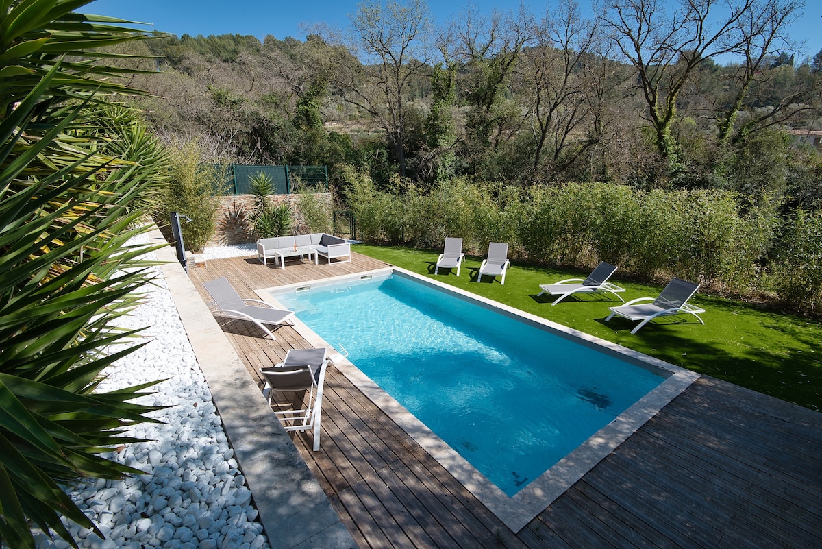 Unusual house deep in the woods. In Provence Verte, nestled between forests, olive trees, scrubland and vineyards. Wood fire in winter, swimming pool, petanque court, nap, meditation, yoga or reading under the pagoda in the forest. In the heart of nature in an exceptional environment. Comfortable and air-conditioned cabin, quiet to recharge and disconnect. Parking. Fence for our animal friends. Ideal vacation to visit beautiful places.