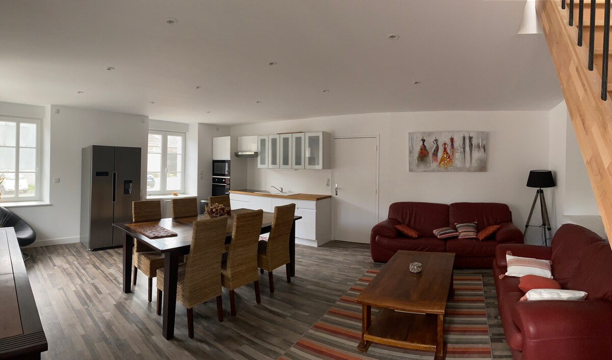 Relax in this quiet and stylish place. Located in the heart of Saint Nicolas de Port, free parking nearby. Close to shops. 5 min from the Rosières-aux-salines stud farm, 15 min from Nancy and 25 min from Nancy Thermal. The accommodation has a quiet inner courtyard, with private terrace. The accommodation includes a fully equipped kitchen on the ground floor, a double bed with TV, bathroom with shower and separate toilet upstairs. View of the basilica. Bed linen, towel and cleaning included
