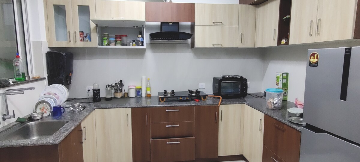 * This is a strictly quiet residential home for rest. ** Alcohol is not permitted inside the apartment. A clean, calm 2-bedroom apartment for couples and families seeking a peaceful stay near the beach. Each bedroom has AC and a private bathroom with hot water. The apartment includes a washing machine, TV, fast WiFi, and a compact kitchen with fridge, induction stove, and kettle. Power backup is available. The beach is a 10-minute walk away, in a quiet residential area away from noise.