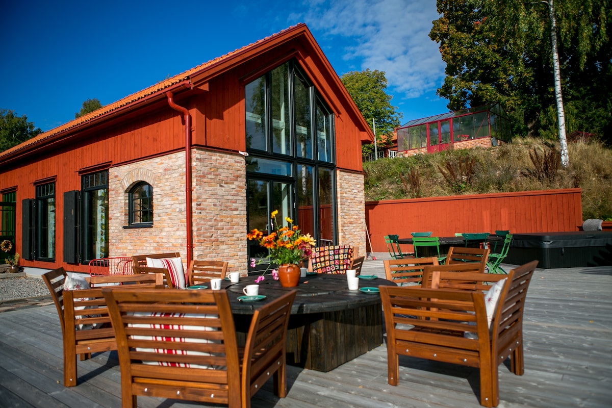 Welcome to Insta @Frykstaladan. It is located 50 meters from the fairytale lake Fryken's southern end. This unique place has a style all its own that has emerged over the five years that we have been rebuilding the barn. High ceilings and plenty of space both inside and out. Everything is new and fresh. Perfect place for rest and recreation. It includes bicycles, kayaks and SUPs (2 of each) and the proximity to sports and outdoor life is good. Värmland attracts with its culture, visit Lerinmuseet, Alma Löv, Berättarladan or...