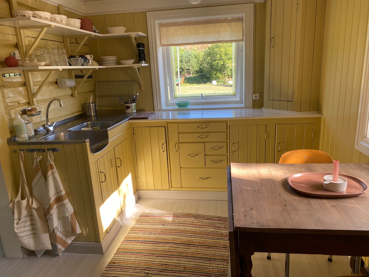 Our cabin is idyllically located in the middle of Raet National Park, completely secluded with spectacular views of the sea. Here you can enjoy walks, swimming areas and waves, even on stormy days. The cabin is newly renovated with Sigdal kitchen, new porch, awning, Weber grill, gas pizza oven, fire pan and outdoor fireplace. Sleeps 6 + new double sofa bed with amazing views. The rowboat also belongs to the cabin, but you should be several to lift it out. The cabin is perfect for quiet days or adventures in the sea and nature