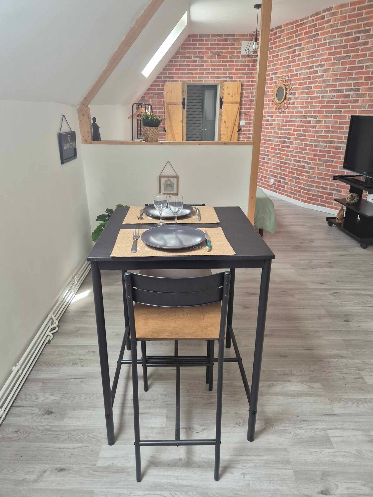 Bright and newly renovated apartment in the heart of the ramparts of Le Quesnoy. The charm of the exposed beams gives the place a cozy atmosphere. A stone's throw from Place du Général Leclerc and shops, everything is within walking distance. The peaceful courtyard is perfect for breakfast before exploring the ramparts or the Mormal Forest.