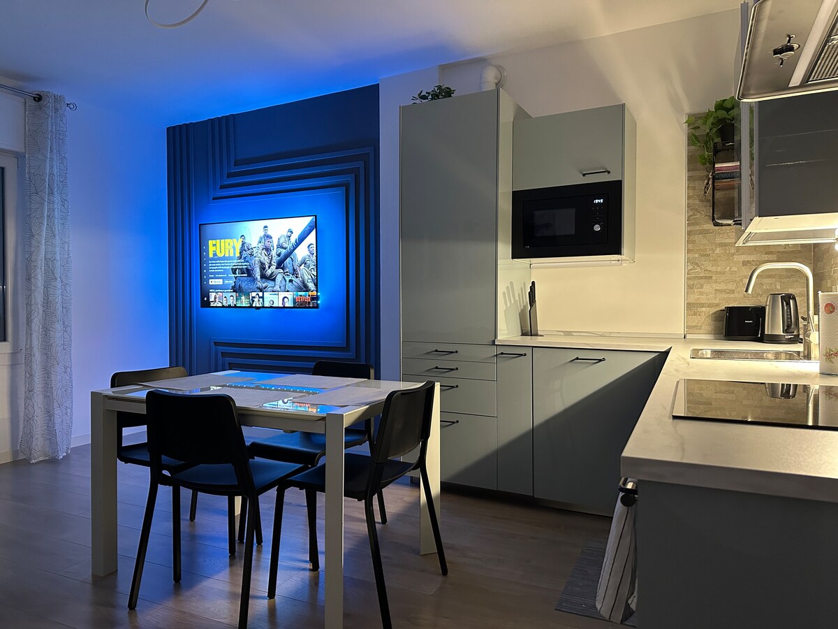 Modern and elegant three-room apartment in the center of Mestre, with an enchanting view of the canal. Enjoy life on the canal in this elegant modern three-room apartment located in the heart of Mestre! -2 double bedrooms -Bathroom with spacious shower -Open space kitchen with living room with smart TV and Wi-Fi - Panoramic balcony with a view Ideal location: Close to the historic center, shops and restaurants -10 minutes from Venice and Marco Polo Airport -5 minutes from Mestre Railway Station -25 minutes from PadovaFiere