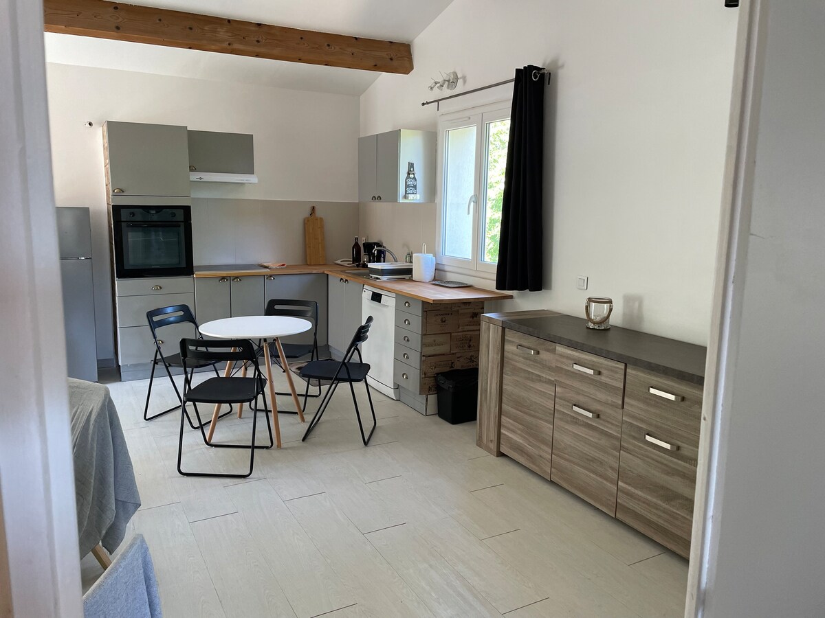 50 m2 2-room accommodation at the top of a villa in a village in Provence. In the quiet of a small subdivision, free parking, independent access, small south-facing balcony and outdoor space in the shade of trees. Apartment renovated this year, equipped with a double bed and dressing room, a sofa bed in the living room, baby equipment is available on request.