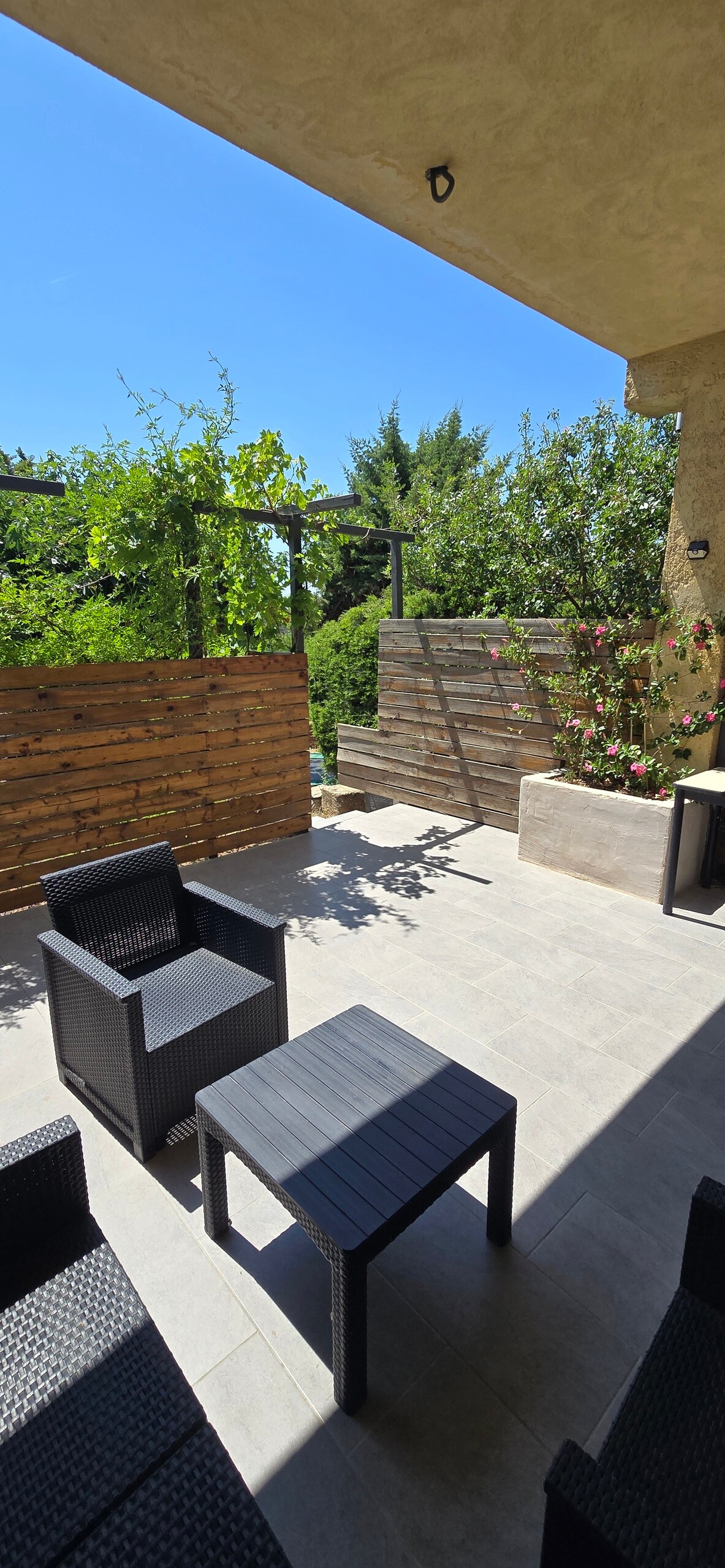 Welcome to La Roucoulade, a slow chic cottage in Provence, designed for slowing down and recharging your batteries. This detached cottage combines Provençal charm — terracotta floors, natural materials — with elegant, contemporary décor and colourful touches. Bright and comfortable, it welcomes couples and families for peaceful stays, in tune with the rhythm of the South. A simple, well-kept place, ideal for enjoying Provence in complete serenity.