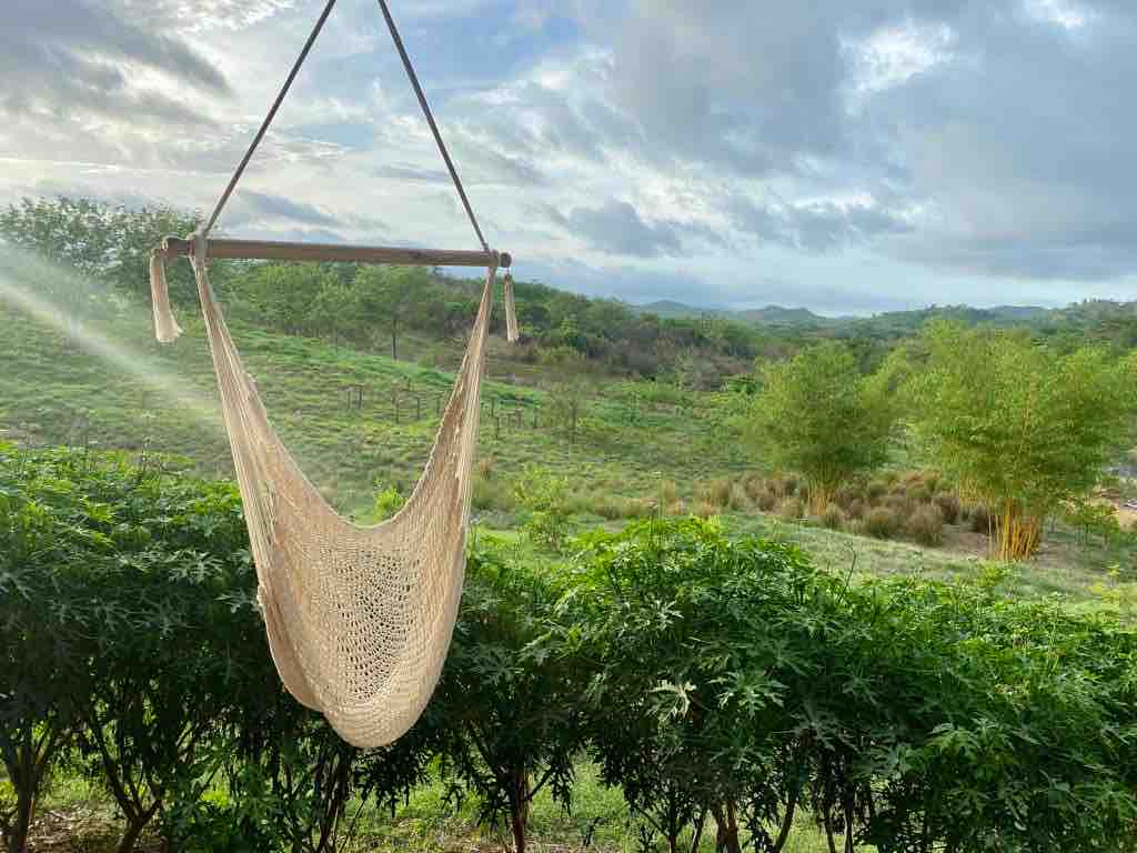 This unique place has a style of its own. Popoyo La Terazza opened its doors May of 2022 and welcomes short to mid term adventurers, travelers, surfers and digital nomads from all over the world. A 2 bedroom, 2 bath house is set on a farm in a beautiful valley with views of the volcano Mombacho. The property has a food forest, an edible garden, banana circles, natural honeybee hive and 3 goats. We are only 3 km away from Guasacate Beach and world class surf.