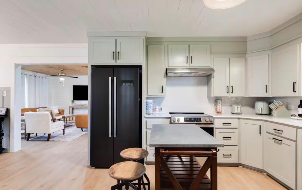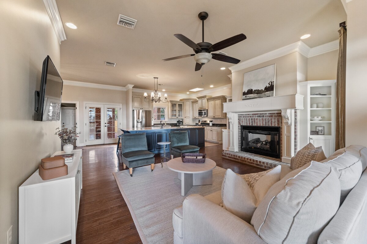 Escape to this stunning luxury home on the Vermilion River in Milton, just minutes from Youngsville. Enjoy river views from the open living & kitchen areas, all designed with a bright, airy feel. Unwind on the back patio with a hammock, swing, chairs, fire pit, and BBQ grill. Each Bedroom & living area has a TV. Fast WiFi makes it perfect for streaming or remote work. Peace, comfort, and style await! Place sleeps 8 with 3 beds, two single cots. It could sleep up to 10 counting the two couches.