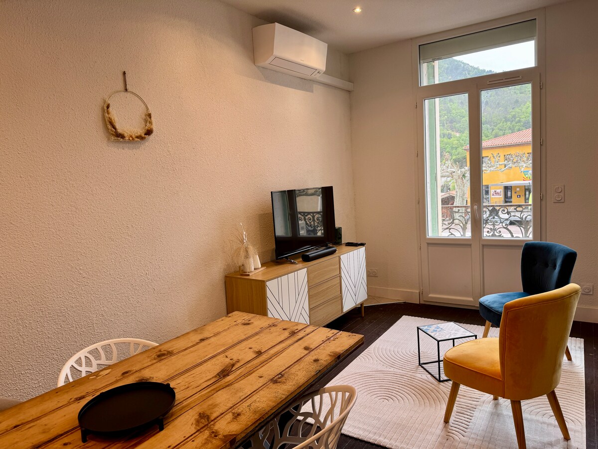Centrally located one-bedroom apartment in Vernet-les-Bains with lovely views over the surrounding mountains. Peaceful, quiet and well-equipped. Numerous amenities within walking distance. A multitude of hiking trails are easily accessible directly from the front door. All that's left to do is put on your hiking shoes and start discovering the wonderful nature that this area has to offer. - Sheets and towels included. - TV with Netflix access and tv channels