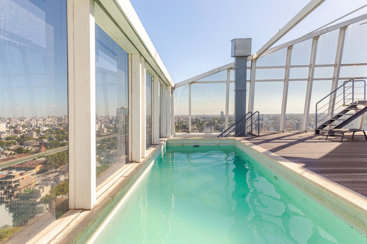 Spectacular apartment, spacious and bright with private terrace, swimming pool and grill. Fully equipped and decorated to make your stay as pleasant as possible. The apartment is on the top floor of a modern building located in Palermo Soho, one of the safest areas with great gastronomic and cultural appeal. Ideal for couples looking for tranquility, a comfortable rest, and to enjoy an incredible terrace with a beautiful view.