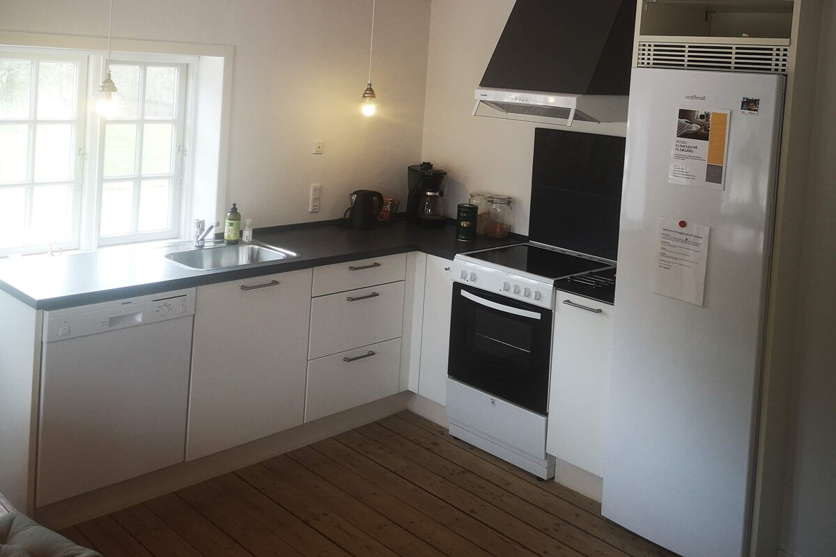 Karensdal B&B consists of 2 separate double rooms. Each with its own entrance, kitchen and bathroom/toilet. Bright and friendly, individually decorated. In this listing, you will have access to both rooms, i.e. the possibility of a total of up to 8 beds. 5 in room 1 and 3 in room 2. There is a common room between the two apartments with, among other things, a washing machine, dryer, freezer, table tennis and darts. Barbecue for free use.