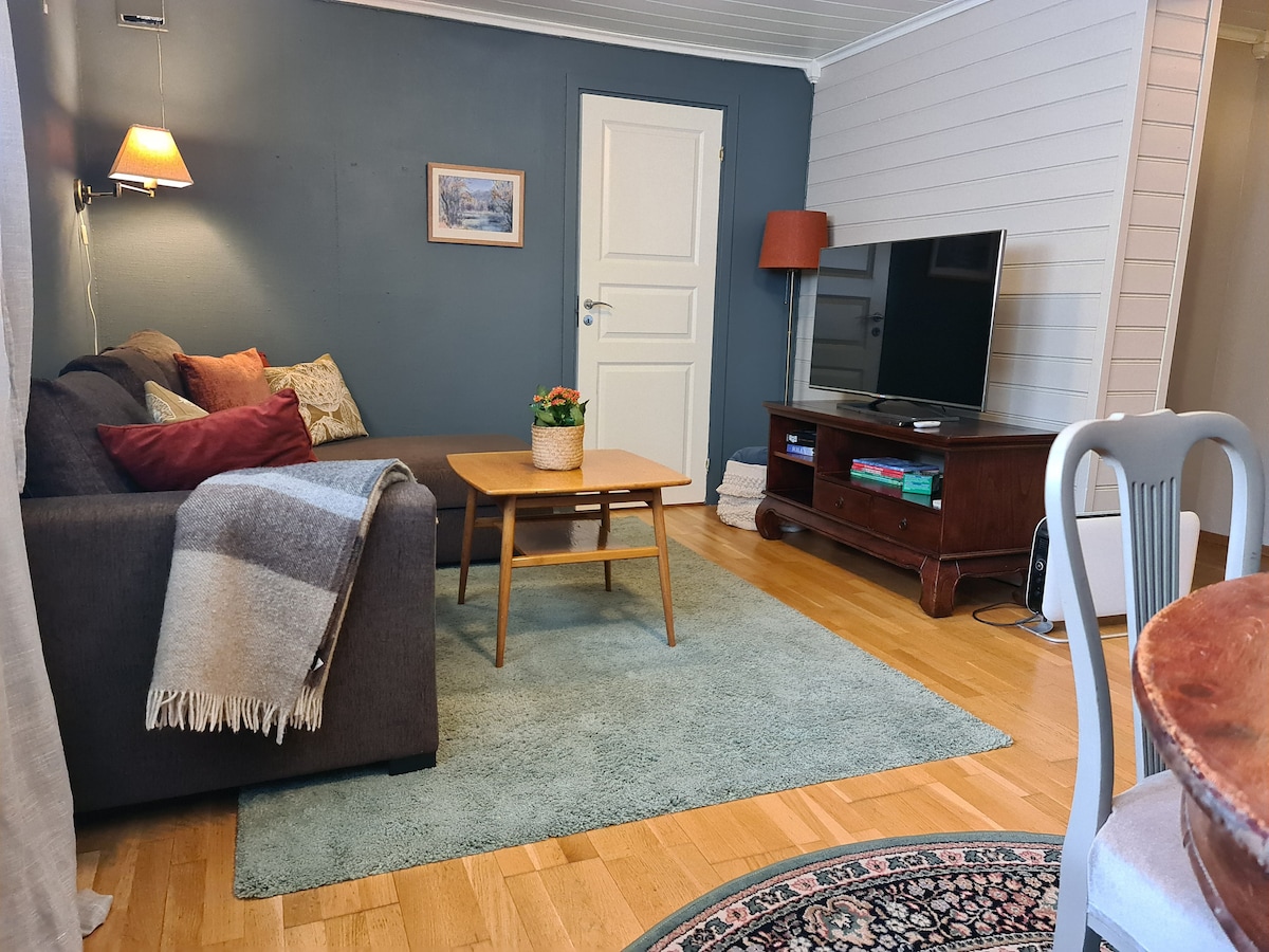 Bright and modern apartment on the 1st floor of a semi-detached house. The apartment has two bedrooms, one with a double bed and one with a single bed, or access to a 120 cm air mattress, living room and kitchen solution with spacious sofa, fireplace and fully equipped kitchen. Large windows let in a lot of daylight, and warm details create a warm and relaxing atmosphere – perfect for both cozy evenings and pleasant meals. In the surrounding area you will find great hiking trails and ski tracks, as well as Raufoss Waterpark and Lekeland for the whole family.