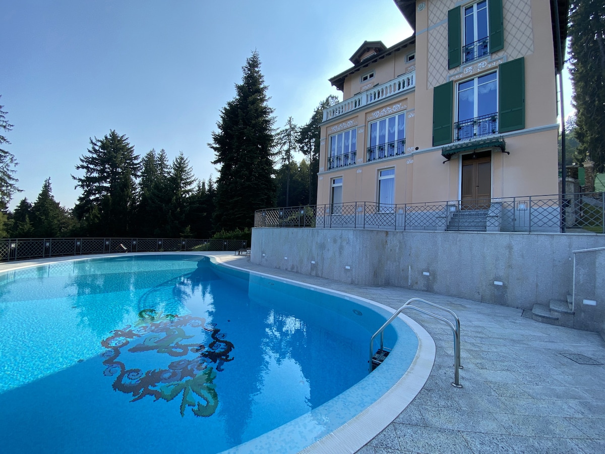Bright apartment with panoramic terrace, to relax in comfort. Well-maintained residence with an elevator and two swimming pools, one of which offers panoramic views (from June to September), located in one of the lake's most beautiful areas. The house is spread across two levels: on the ground floor, there is a terrace with a view, a living area, a full kitchen, and a bathroom. Upstairs, there is a study area, bathroom, double bedroom, and family room with a double bed and two single beds that can be joined. Two places. Near A.S.D. Golf Club Alpino di Stresa