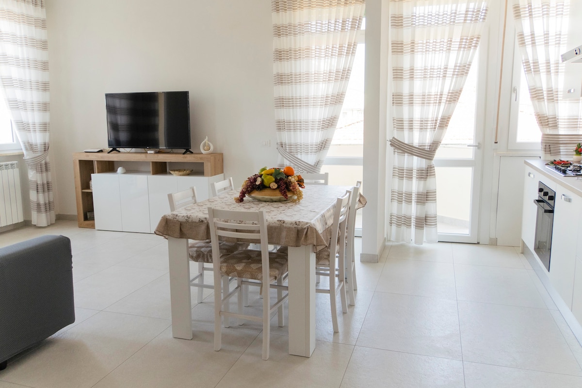 This bright apartment, furnished with care and attention to detail, is the ideal choice for those who want to experience the city with the utmost comfort. The spaces are large, bright and cozy, perfect for relaxing after a day at the beach or around the center. Whether you are on vacation, traveling, or simply looking for a quiet corner to unwind, here you will find everything you need for a pleasant and carefree stay. The apartment is a 15-minute walk from the sea.