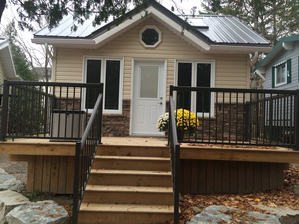 Part log treehouse, part beach house and 100% of what you need to enjoy a peaceful getaway only 1.5 hours from Toronto! Walk up the private staircase and pause to enjoy the spectacular treetop and waterfront views from your own wraparound deck before entering your 900 sq. ft. oasis. Enjoy access to your own lawn, picnic table and beach* area and all that Georgian Bay and the area has to offer. *water levels fluctuate Insta: sunset_beach_cottage_canada