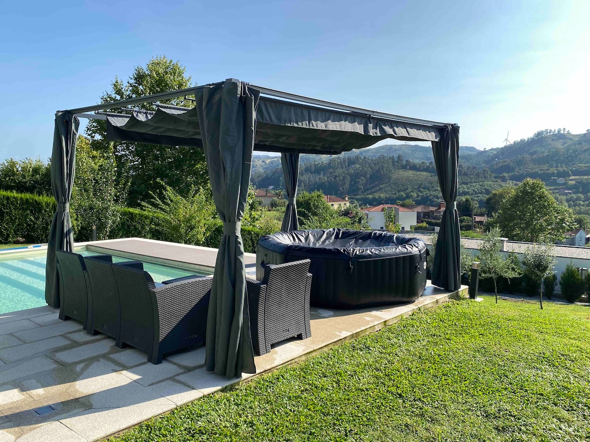 Basto Village House is a self-sufficient eco-luxury villa with a year-round jacuzzi, saltwater pool, and breathtaking mountain views. Blending smart technology, comfort, and nature, it offers an exclusive and unforgettable stay — the perfect retreat to enjoy the tranquility and magical summer nights in the heart of Minho.