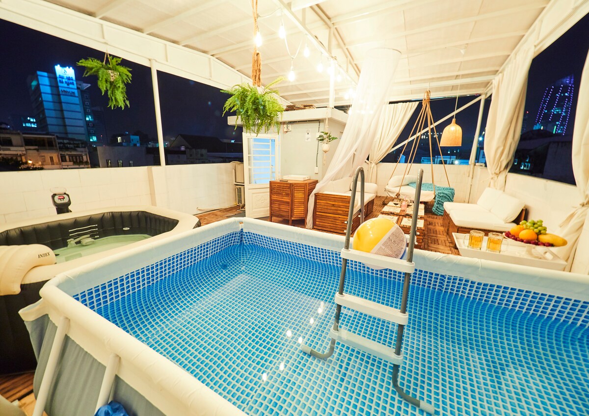 This 3 BR house with KID SWIMMING POOL/어린이 실내수영장 & SPA JACUZZI on the rooftop is perfectly-sized for Young Family/Friends & equipped with Essential amenities, WIFI, fan & AC. Centrally located distance walking to Han Market, eateries. My Khe Beach/Airport is 8-10 mins by drive. Your stay includes FREE/무료: ★Welcome gift: Water, tea/식수, 차 ★Daily Cleaning and Fresh towels/매일 청소 고 매일 수건 교체 ★ Whole house water filtration system/🚿 전체 정수 필터 시스템 ★English & Korean map/영어 고 한국어 지도 ★Trip Plan/여행 계획