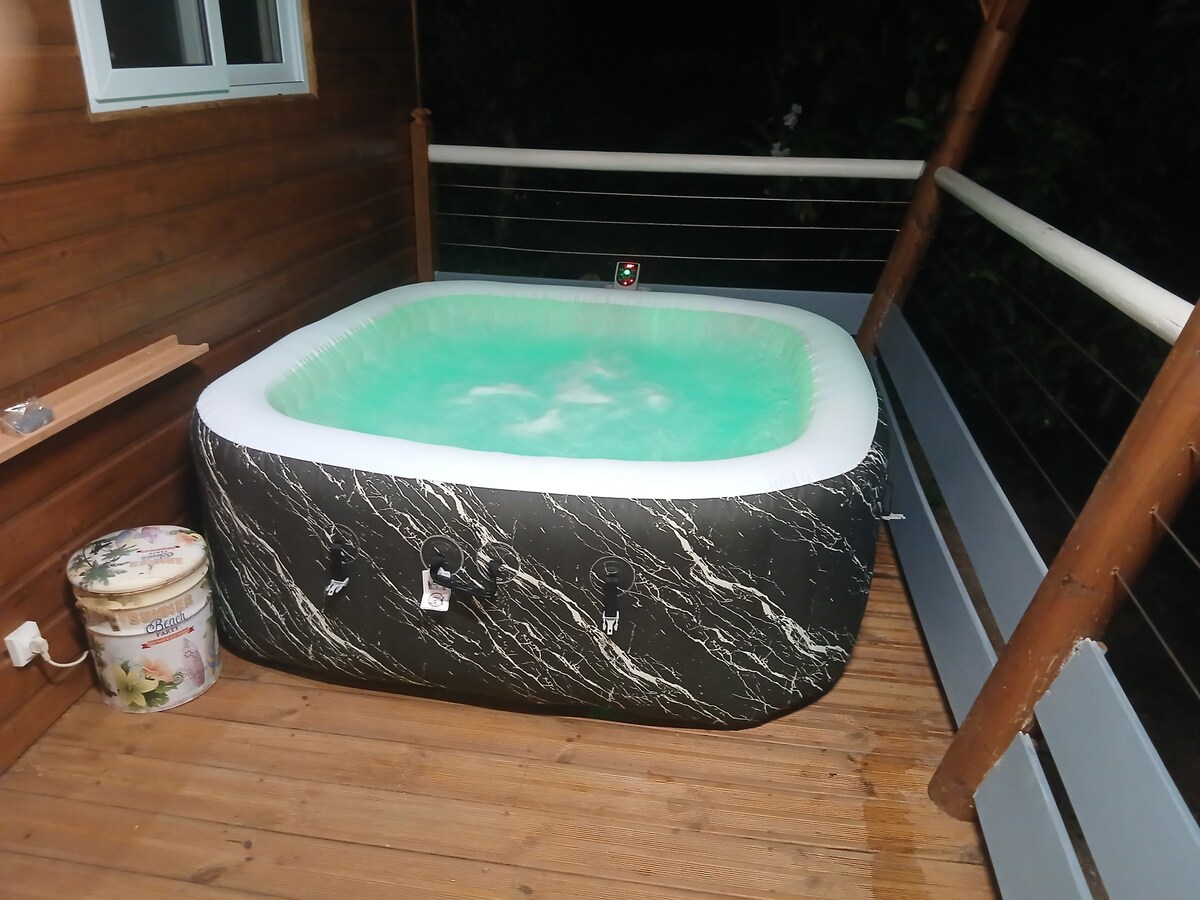 Découvrez Panorama Kréyòl, un bungalow sur pilotis offrant une vue spectaculaire sur la mer et les montagnes. Au cœur de la Basse-Terre, profitez d’un cadre en bois chaleureux, d’un jacuzzi privatif et d’une immersion totale dans la nature guadeloupéenne. Profitez de la proximité des plages idylliques, des randonnées vers la Soufrière, et des cascades. Climatisé et équipé d'une terrasse avec filet de catamaran, il offre confort et aventure. Un guide voyageur est inclus.