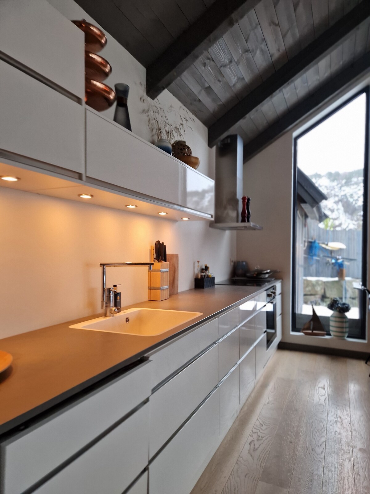 Villa Vene is made for long meals, bare feet and slow evenings. Mornings begin with coffee in the sun, children move freely between garden and courtyard, and evenings gather everyone around the fireplace or pizza oven. The house offers space, comfort and calm for families and groups, within walking distance to beaches, playgrounds and activities. Explore UNDER, the coast and Lindesnes by day – and return to a private base where the holiday can breathe.