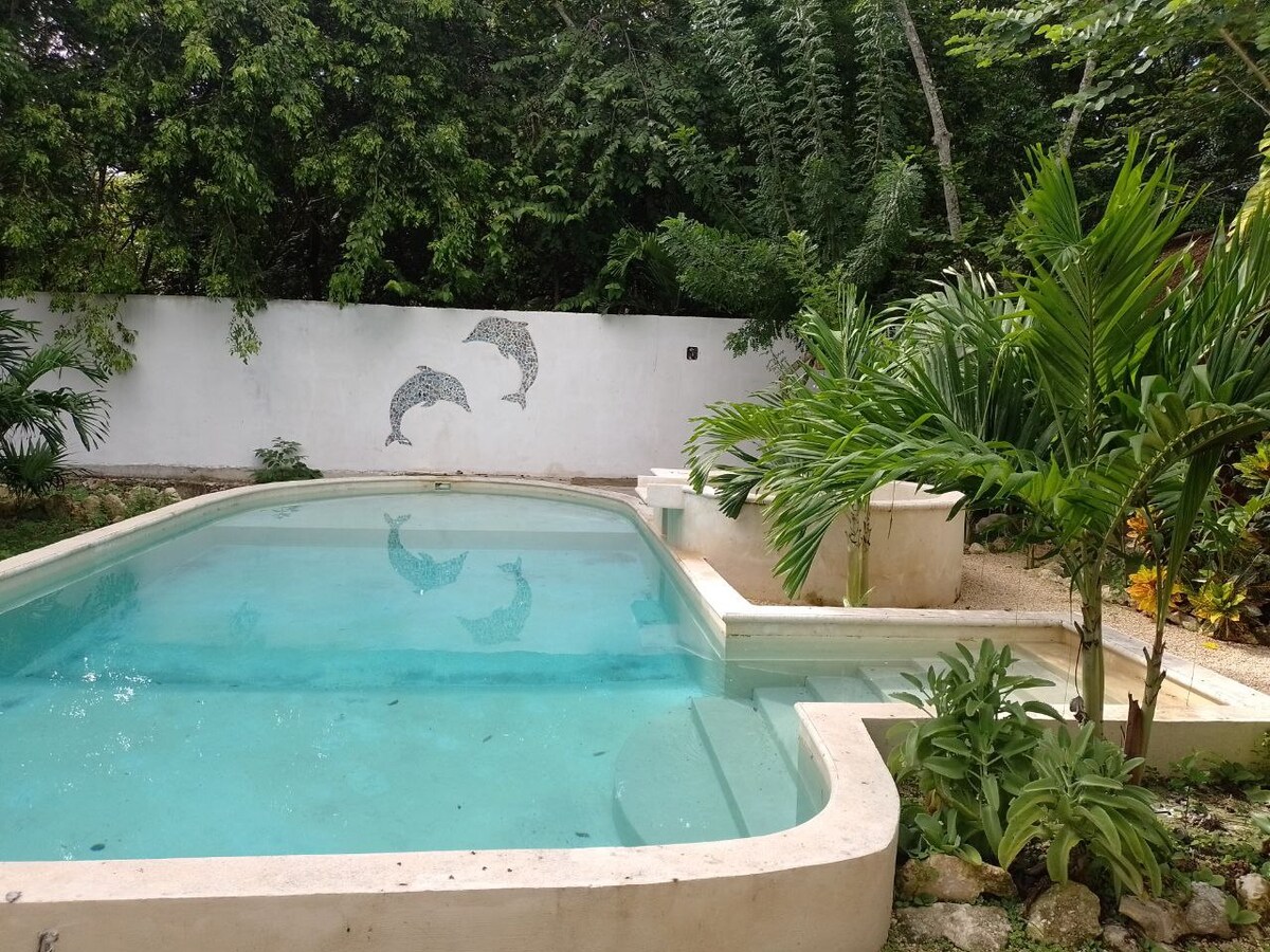 Turn on, tune in, drop out...private house in the Sian Ka'an Biosphere Reserve. White sand beach and a star filled sky! Ocean kayaks, Body surfing, Sun bathing. If you want to get away from it all to enjoy nature, there is no better place than Rancho Pepo. You will enjoy more than a hundred meters of sandy, palm filled front yard complete with hammocks, sun beds and lounge chairs. Once to the beach you can swim, snorkel, body surf and kayak.