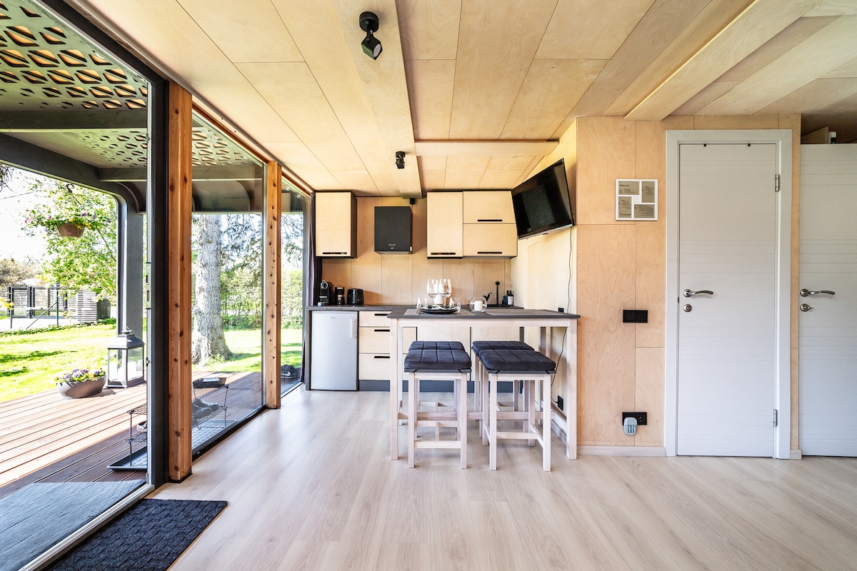 This is an amazing brand new 200 square metre house just 25min drive from Tallinn's city centre. 20min from the port, 20min from the airport. This is a one bedroom house where the master bedroom is en-suite. You will have a brand new (no one has lived in), just built in 2026 a house with patio and sauna. During the winter time you can jump from sauna straight to the snow, in the summer enjoy the starry sky. We have an amazing patio outside as well you can jump to the snow from the sauna
