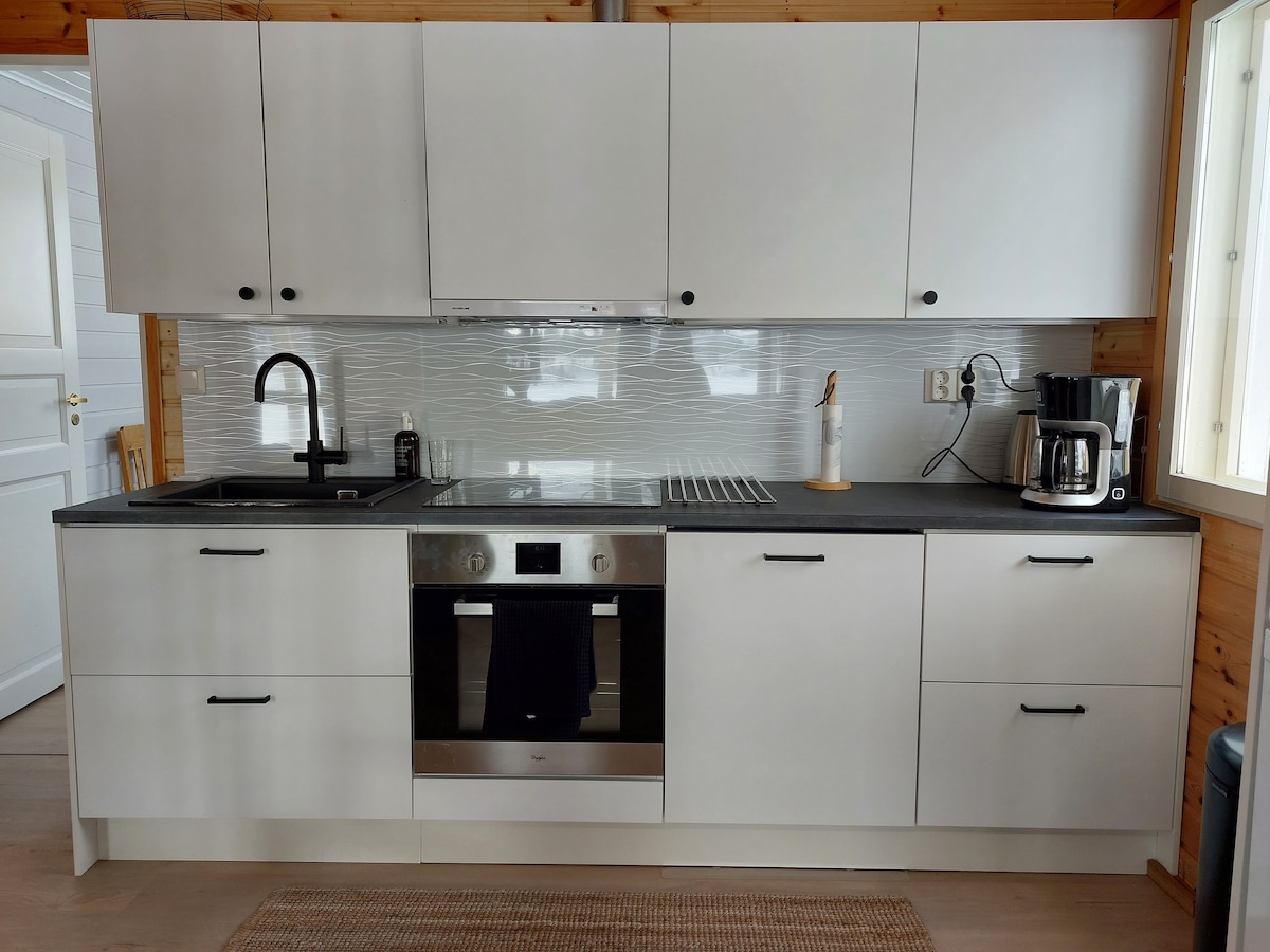 Welcome to our private cottage to enjoy your stay! Our small (37 m2) but comfortable cottage includes small kitchen with all amenities included (airfryer, no oven), big traditional finnish sauna, bathroom and tiny toilet. A/C (movable device, on request) makes your stay pleasant also in summer and the cottage is heated year around. For sleeping there is one queen bed (160 cm). Baby bed and one mattress 80x200cm available if needed. For safety reasons the hosts will warm up the sauna for you.