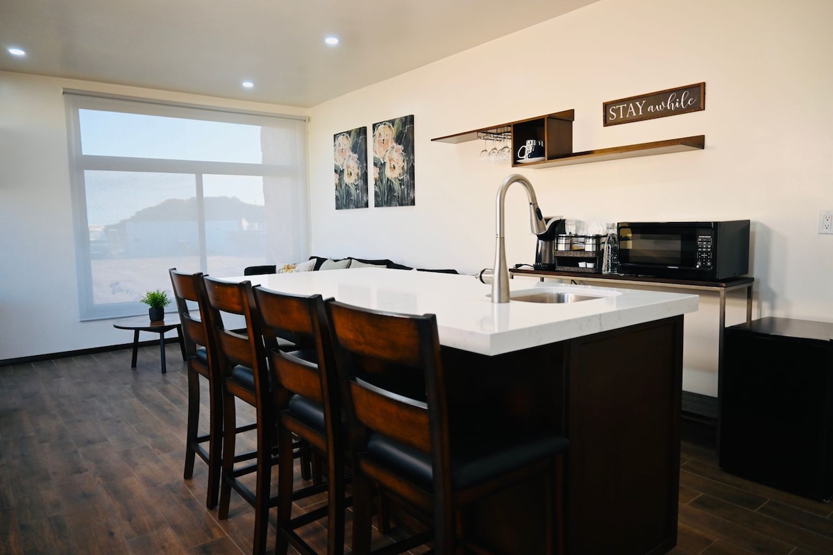 Bungalow Flor de Garambullo #1 is nested in a marvelous scenic setting. Peace and tranquility surrounds this cozy and open space. Whether you're here to explore wineries and Restaurants, or just for relaxation, this is it. We are close to the most visited and sought-after locations in el Valle de Guadalupe. The bungalow is well-appointed with the most amenities. There are huge windows so that you can enjoy the natural light, views, and stars at night.