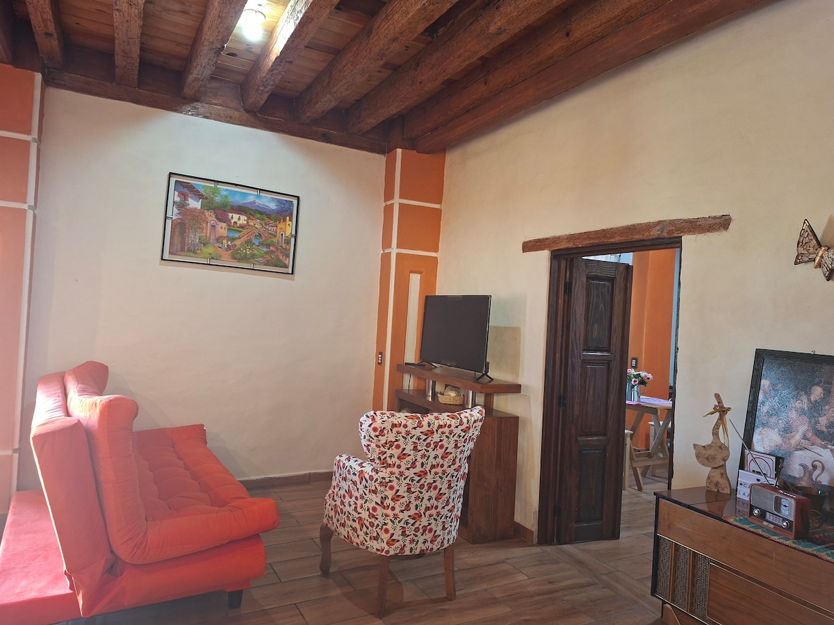 Country house in a magical village. Comfortable, built with adobes and wood, which guarantees a pleasant temperature all year round, parking, and a coffee bar service inside the same building.
