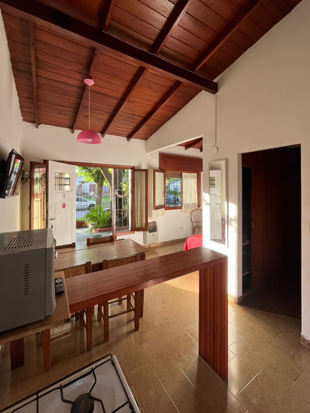 Duplex moderno remodelado en 2023, rodeado de verde y a tan solo 100 metros de la playa. En planta baja living con sillón y TV, toilette, comedor y cocina integrada totalmente equipada con vajilla y electrodomésticos, patio privado con living de exterior. En planta alta 1 habitación principal, baño completo y habitación secundaria con 3 camas simples. Condominio cerrado con amplio parque, wifi por fibra óptica, cocheras privadas y espacios comunes de parrilla y quincho.