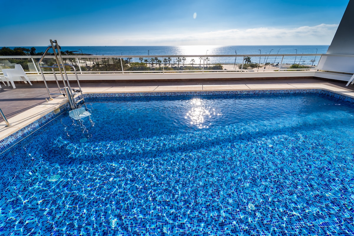 Welcome home! Your new 80 m² luxury apartment is located in an exclusive, quiet area of Benidorm, just 30 meters from the fantastic sandy, longest beach in Benidorm - Poniente beach. The location affords you a wonderful view of the sea, and there is a 200 sqm terrace with a pool. The tasteful and exclusive interior fittings and furnishings invite you to relax and enjoy every moment, completely undisturbed. There is a modern smart television in every room. And of course you have your own garage.