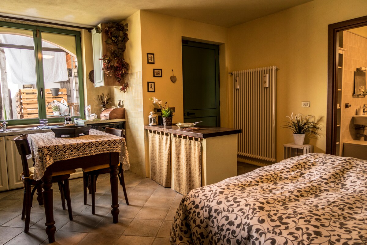 Small, typically Piemontese terraced house in a historical village at the foot of the castle of Cerrione in the province of Biella. Fully equipped kitchen and bedroom with panoramic views of a moraine and a greenhouse situated on it. Private entrance and a reserved parking space. Ideal place for outdoor sports and to visit the sites of scenic, historical, and cultural interest of Biella and Canavese. 15 minutes from Lake Viverone, 20 km from Ivrea, 14 km from Biella and 17 km from Santhià.