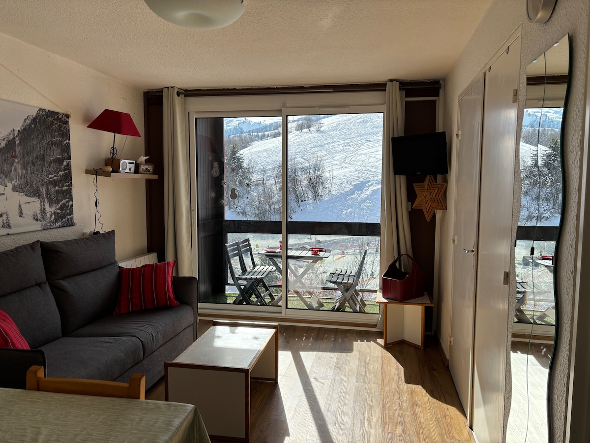 Studio with panoramic balcony, at the foot of the slopes