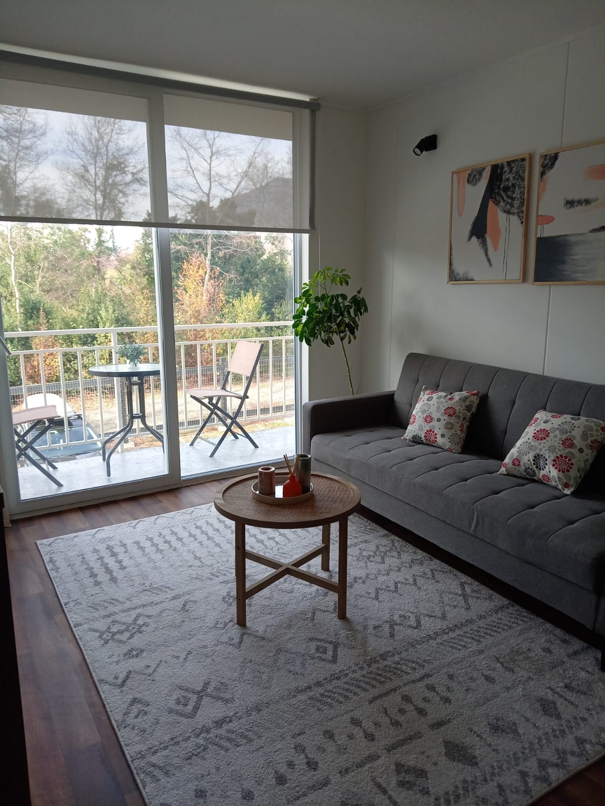Estiloso y Luminoso Departamento Full Equipado en el centro de Pucón. Queda a 2 minutos caminando del lago y a 5 del centro comercial y casino. Tiene 2 dormitorios y 2 baños, termopaneles para evitar el ruido, piso vinilico, una terraza enorme para asados, y el condominio cuenta con una piscina y un quincho increíble. Puede configurarse para recibir 2 parejas o una pareja con niños. Lo que no podrás ver aquí es el servicio que te damos, somos muy enfocados en que tu estadía sea memorable.