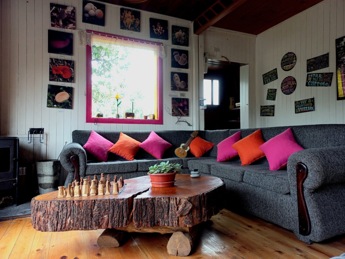 Avellano 🇨🇱 Shelter 1 🤘 It is a cozy place surrounded by nature, ideal for couples or a small family. 🐶🐱 It has a double bed, sofa bed, equipped kitchen and private bathroom. Every morning you can enjoy a delicious breakfast of your choice: American🍳, Country🧀 or Healthy🥑, served directly in your retreat. In Aldea Molco you will find native forest, estuary with natural pond, animals and green areas with games for children. ✨A perfect space to rest and enjoy💫