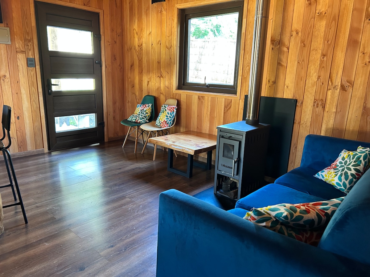 45 minutes (32 km) from Pucón, a beautiful alpine cabin nestled in the forest, designed for an experience of disconnection and simple life. Silence, birdsong, native trees, sun and ridge rain, with excellent WiFi. We have conventional electricity and incorporate renewable energy to be more conscious of the planet. Pellet stove heating and wood-burning stove, for those who value simple and conscious living. If you love the forest more than urban luxuries, this is for you!