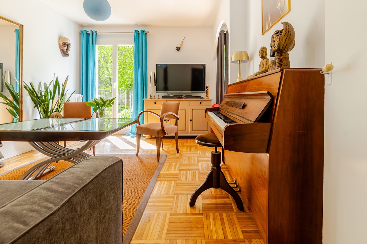 Located near the Eglise de Pantin metro station, near the Ourcq Canal, 10 minutes from Parc de la Villette and the Cité de la Musique, 25 minutes from the center of Paris. 50 m2 apartment, on the 1st floor without elevator, very bright, quiet, located in a private park. The apartment has a bedroom with a double bed, a living room, a kitchen, a shower and separate toilet. Perfect place for a couple but also suitable for solo or business travelers.