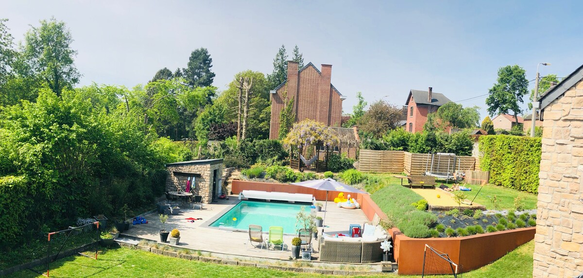 The refuge is designed as an autonomous habitat 40 meters set back from a dead end, the swimming pool is reserved for travelers (open from 01.05 to 01.10). Naxhelet golf course is located 7 minutes away by car. Everything is planned for calm, rest and tranquility. Access is private and enjoys a location in the heart of a one hectare property. The accommodation which is air-conditioned (hot and cold). In winter, the wood stove for warm moments.