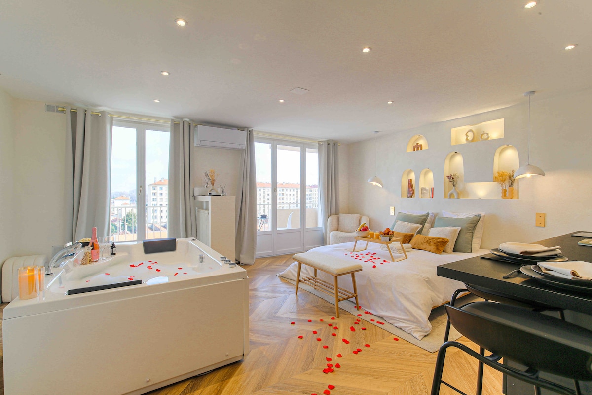 13 min walk to Part-Dieu train station/one street from Lyon: Ideal studio for a couple looking for hotel standards and a cozy little nest to stay pleasantly in Lyon. Completely renovated in 2024 by an interior designer. The apartment is quiet, ideally located with all the local shops for the comfort of your stay. A stone's throw from the property, several buses take you to the heart of Lyon or Part-Dieu train station.