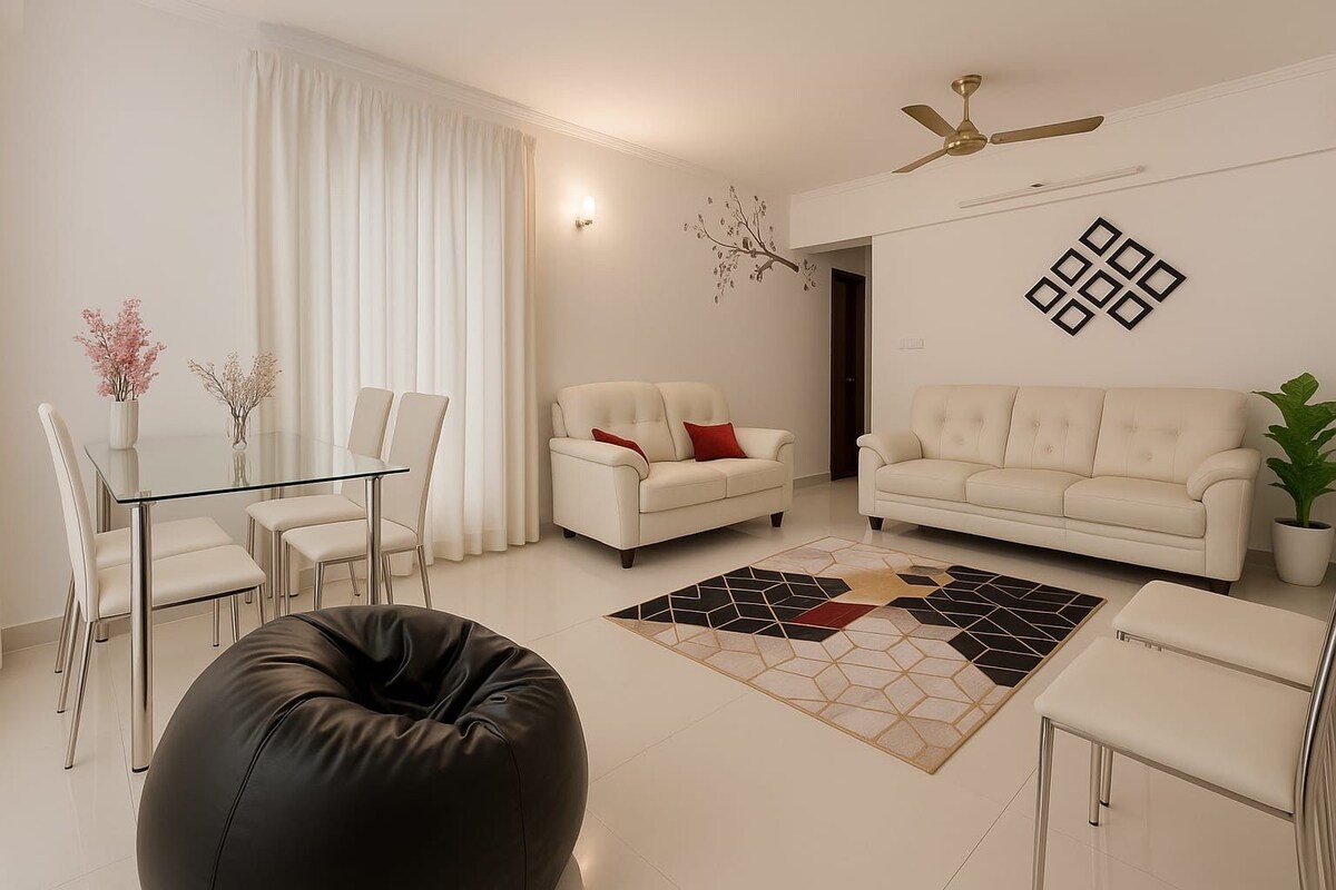 Welcome to Kuteeram - your home away from home! This stylish 1-bedroom apartment is perfectly located, with breathtaking skyline views and modern comforts. Whether you're here for business or pleasure, our apartment provides a perfect blend of serenity & convenience. You'll be within walking distance from malls offering entertainment, food & shopping options. Our apartment is designed with your comfort in mind, offering a peaceful homely stay. Book now and experience the best of city living!