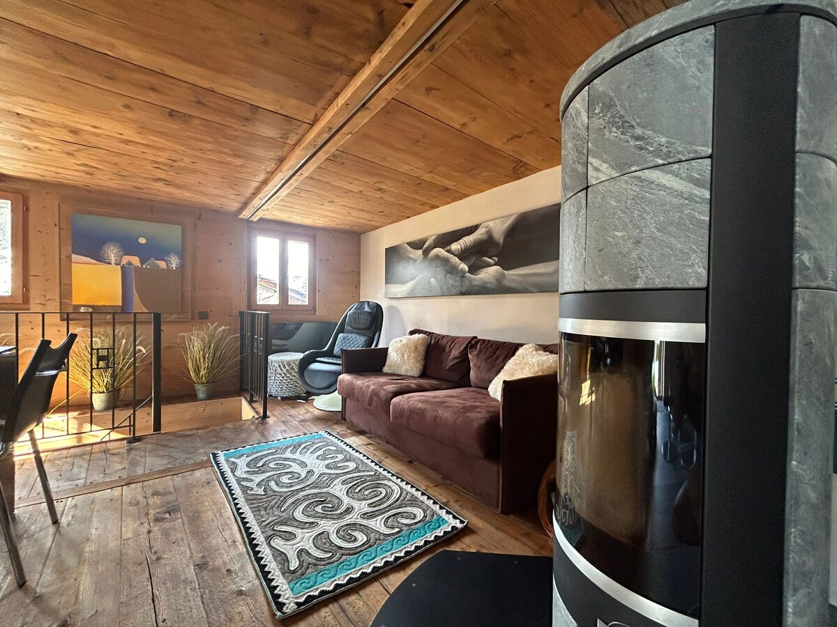 A breathtaking view from your bed! Two peaks over 4000 meters high, along with a magnificent valley backdrop with its glacier. Come and experience sleeping in a fully renovated typical raccard turned into a comfortable room. Additional charge: Nordic bath (hotpot) for CHF 50 on the 1st day and CHF 25/day thereafter. Book minimum 48 hours in advance and we'll heat it up for you.