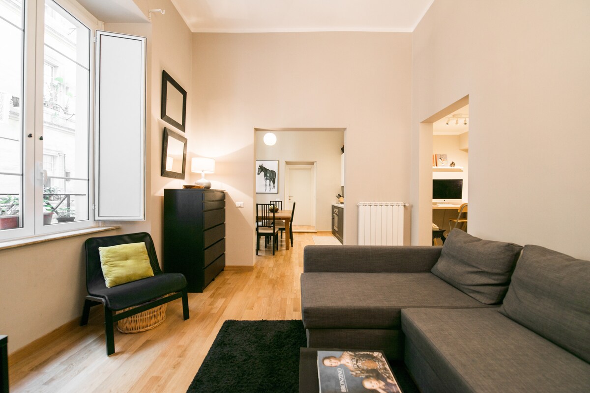 Welcome to Rome! Enjoy the elegance of the by-gone era while staying in this Ancient Roman home. Beautifully decorated with furniture with transitional design style and original vaulted brick ceiling. Perfectly located at the Historic City Centre, just 15 minutes’ walk from Colosseo and the Roman Forum, will have you surrounded by the most iconic sights in Rome, when you’re out in the neighbourhood, and steeped in rich Roman culture, when you are relaxing in your warm accommodation.