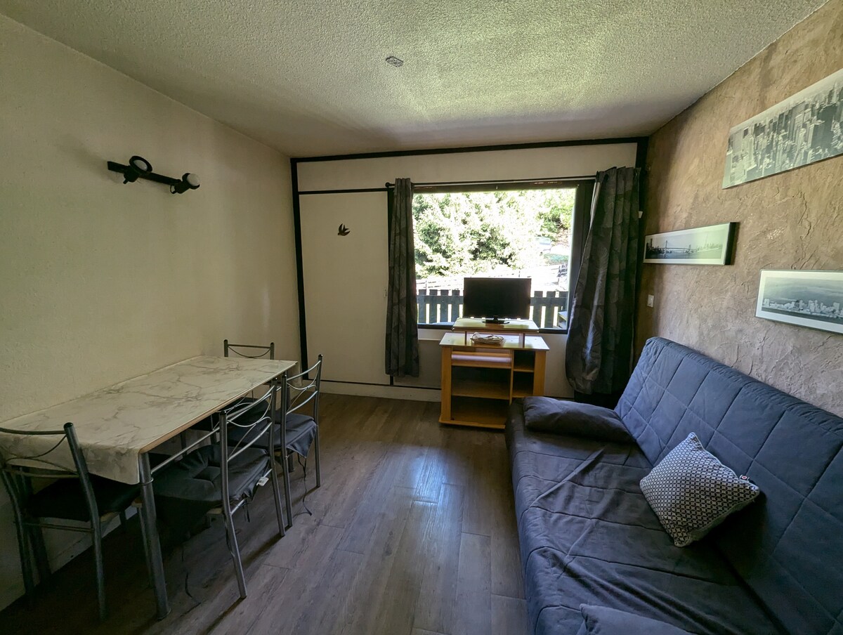 Take a break and unwind at this peaceful oasis in the heart of the mountains. This beautiful refurbished studio is located in the Golden Triangle, less than 30 minutes from Geneva, 45 minutes from Annecy and Chamonix. You will have access to the various outdoor areas as well as the nearby ski resorts: Les Brasses, Les Gets, Morzine, Châtel, Avoriaz, Samoëns. From May 15, the outdoor pool is accessible until September 15. Great place to stay for 2.