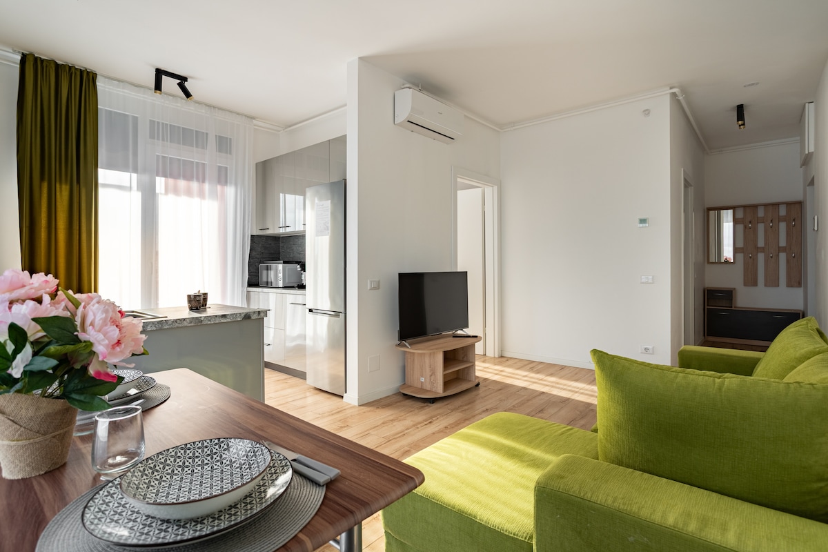⭐ Enjoy the modern, newly built apartment with covered and secure parking ⭐ Spacious living room with sofa bed, bedroom with double bed, fully equipped kitchen and modern bathroom offer all the comforts of travel. Ideal for 4 people, in a quiet central area. Facilities: TV, iron and ironing board, hair dryer, clothes drying rack, automated underfloor heating, air conditioning, building with elevator.