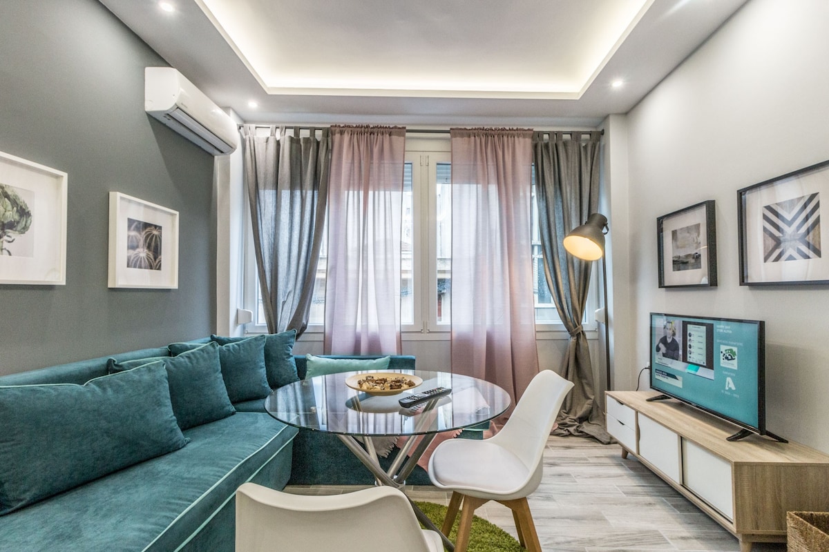 Situated in the heart Centre of Volos, with a 4min Walking Distance to the magnificent Port. Consisting of 1 bedroom, living room with 2 sofa beds, bathroom & kitchen, all sparkling clean. With 32''smartTV-NETFLIX. Ideal to accomodate 5 member-families, travelers, couples& business-guests.Next to a bakery&to the famous Koumoundourou road,surrounded by shops,cafes & restaurants.You can find the latest fashion within your reach.Energetic during day yet relaxing during at night! 5 star hospitality!