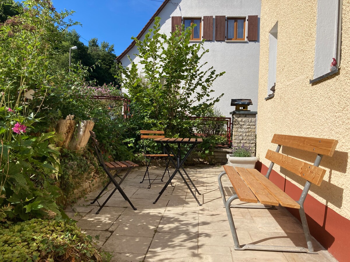 Naturgenuss pur am Waldrand!. Ein traumhafter Ort zum Kraft tanken und Ausruhen, aber auch vielen sportlichen Aktivitäten sind hier keine Grenzen gesetzt.Das Anwesen befindet sich etwas Abseits am Ortsende. In der unmittelbaren Nähe befinden sich Kletterfelsen, Wanderwege ein Fluss zum Kajakfahren. Auch Rad und Motorradfahrer kommen auf ihre Kosten. Auf dem gesamten Grundstück befinden sich 2 Ferienhäuser mit privatem, voneinander abgegrenzten, Outdoorbereich. Kostenlose Parkplätze am Haus.