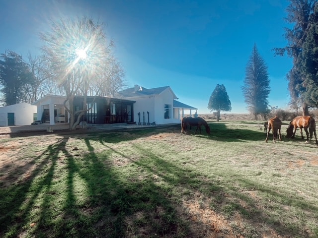 A large family farm house, with space galore. The house is rented as a unit - with all rooms, large living/TV room, dining room, kitchen and indoor braai available to you. The large garden is the perfect place for children to run around and with its never ending view of the Karoo veld it's the place you want to be for all those perfect sunset shots. Giant fire pit / outdoor braai with comfortable outdoor eating patio, and large swimming pool makes for the perfect weekend get away