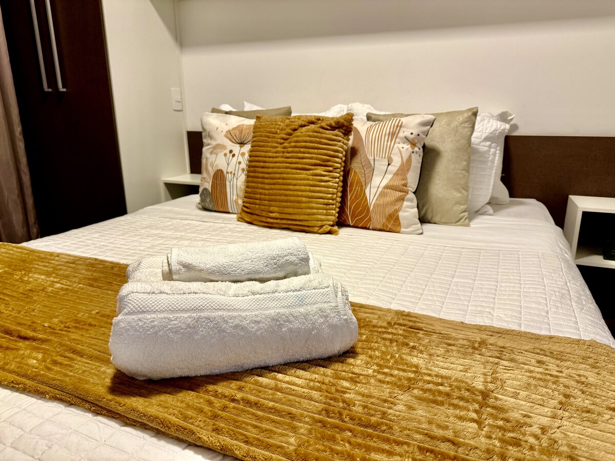 Este estúdio foi projetado para oferecer uma experiência única, unindo conforto, estilo e praticidade. A decoração moderna e cuidadosamente planejada cria um ambiente aconchegante, ideal para relaxar ou trabalhar com tranquilidade. Cada detalhe foi pensado para proporcionar bem-estar, desde a iluminação aconchegante até os móveis funcionais e elegantes. Perfeito para quem busca um espaço exclusivo, cheio de charme e personalidade. Colchão americano Stearns and Fosters dos melhores hotéis de NY.